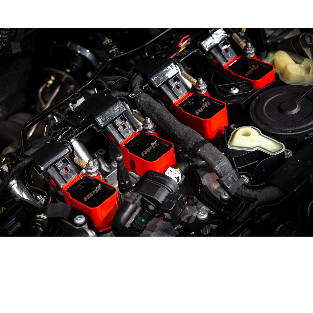 Bobinas de encendido rojas de alto rendimiento con disipación de calor mejorada por APR Motorsport.