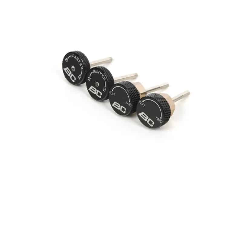 Para permitir el ajuste individual de los 30 ajustes simultáneos de compresión y rebote, BC emplea pequeños diales de ajuste de fácil acceso para el usuario, según el modelo, e incluso disponibles en versiones extendidas si es necesario, que ofrecen diversas opciones de ajuste.