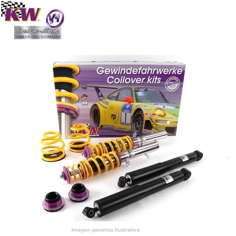 Nuestro modelo de acceso para disfrutar más conduciendo, gracias a un descenso atractivo y ajustable de forma individual, es la suspensión roscada KW V1 de la típica _”_”inox-line_”_” de KW. Su fabricación de alta calidad, el uso constante de puntales de acero inoxidable, resortes resistentes a la corrosión y componentes armonizados garantizan diversión de conducción durante muchos años, no solo la vida útil de un vehículo.